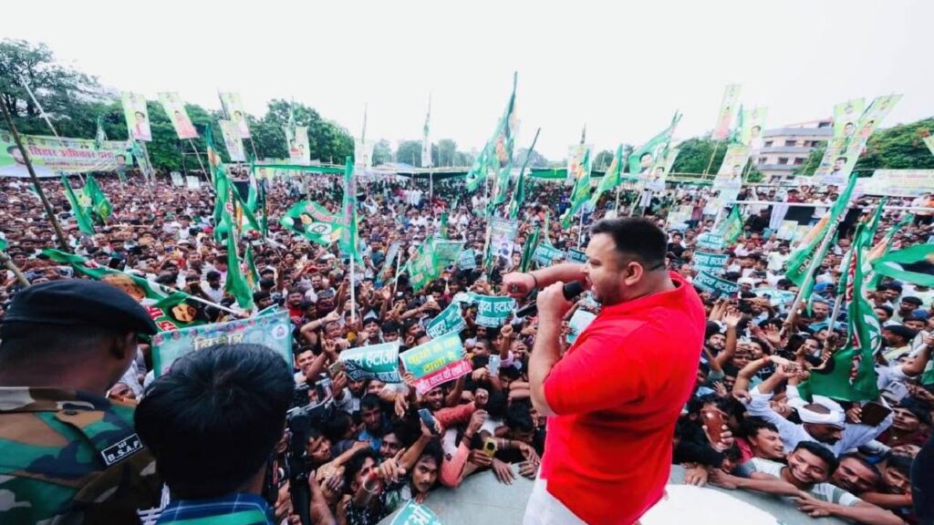 पटना , संवाददाता। चुनाव में वोटरों को रिझाने के मकसद से तेजस्वी यादव बिहार अधिकार यात्रा पर निकल चुके हैं। पहली सभा पटना के मसौढ़ी विधानसभा होते हुए जहानाबाद, नालंदा के इस्लामपुर और हिलसा होते हुए पटना जिला के फतुहा विधानसभा क्षेत्र की उनकी यात्रा में हजारों-हजार की संख्या में लोग सड़क के दोनों किनारे पर खड़े होकर इंतजार करते दिखे।